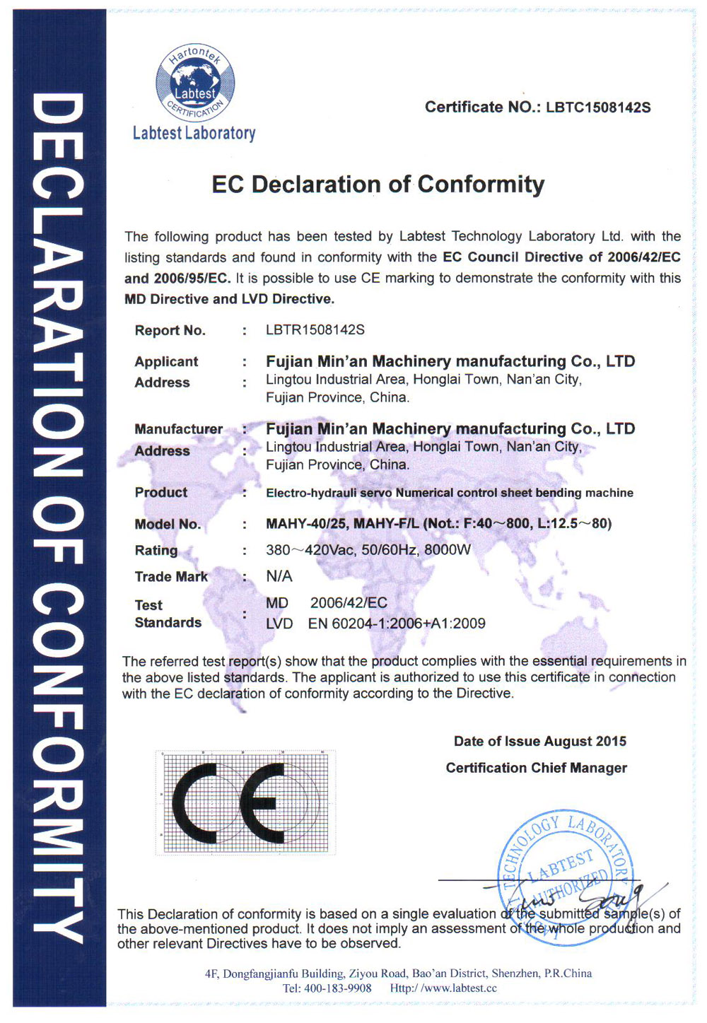 CE认证(数控折弯机)